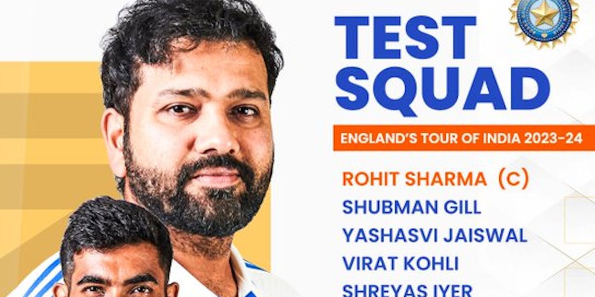 बीसीसीआई की पुरुष चयन समिति ने इंग्लैंड के खिलाफ पहले दो टेस्ट मैचों के लिए भारत की टीम की घोषणा की। भारत 5 मैचों की टेस्ट सीरीज़ खेलने के लिए तैयार है, जिसका पहला मैच 25 जनवरी 2024 से हैदराबाद में होगा। ध्रुव जुरेल को पहली बार टेस्ट टीम में जगह मिली है। पहले दो टेस्ट मैचों के लिए चोटिल तेज गेंदबाज मोहम्मद शमी की टीम में शामिल नहीं किया गया है।