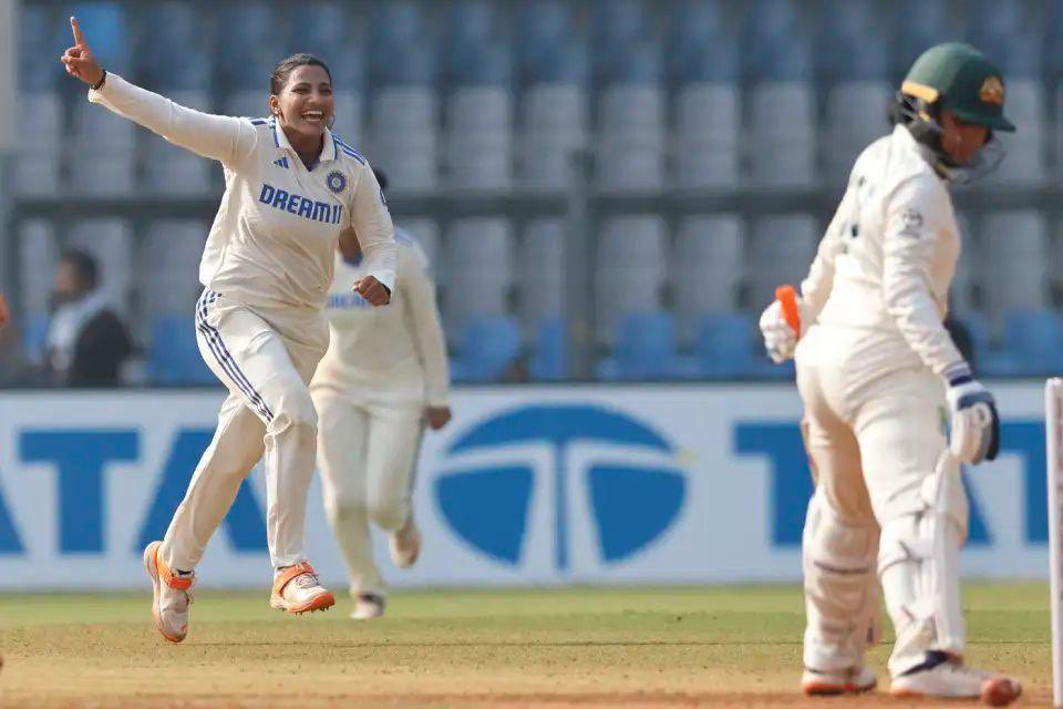 टेस्ट क्रिकेट में भारतीय महिला क्रिकेट टीम का शानदार प्रदर्शन जारी है। भारतीय महिला क्रिकेट टीम ने इंग्लैंड के बाद अब ऑस्ट्रेलिया की टीम को धूल चटा दिया है। टीम इंडिया ने रविवार को मुंबई के वानखेड़े स्टेडियम में आयोजित एकमात्र टेस्ट सीरीज के मैच के चौथे दिन ऑस्ट्रेलिया की महिला क्रिकेट टीम को 8 विकेट से हरा दिया।