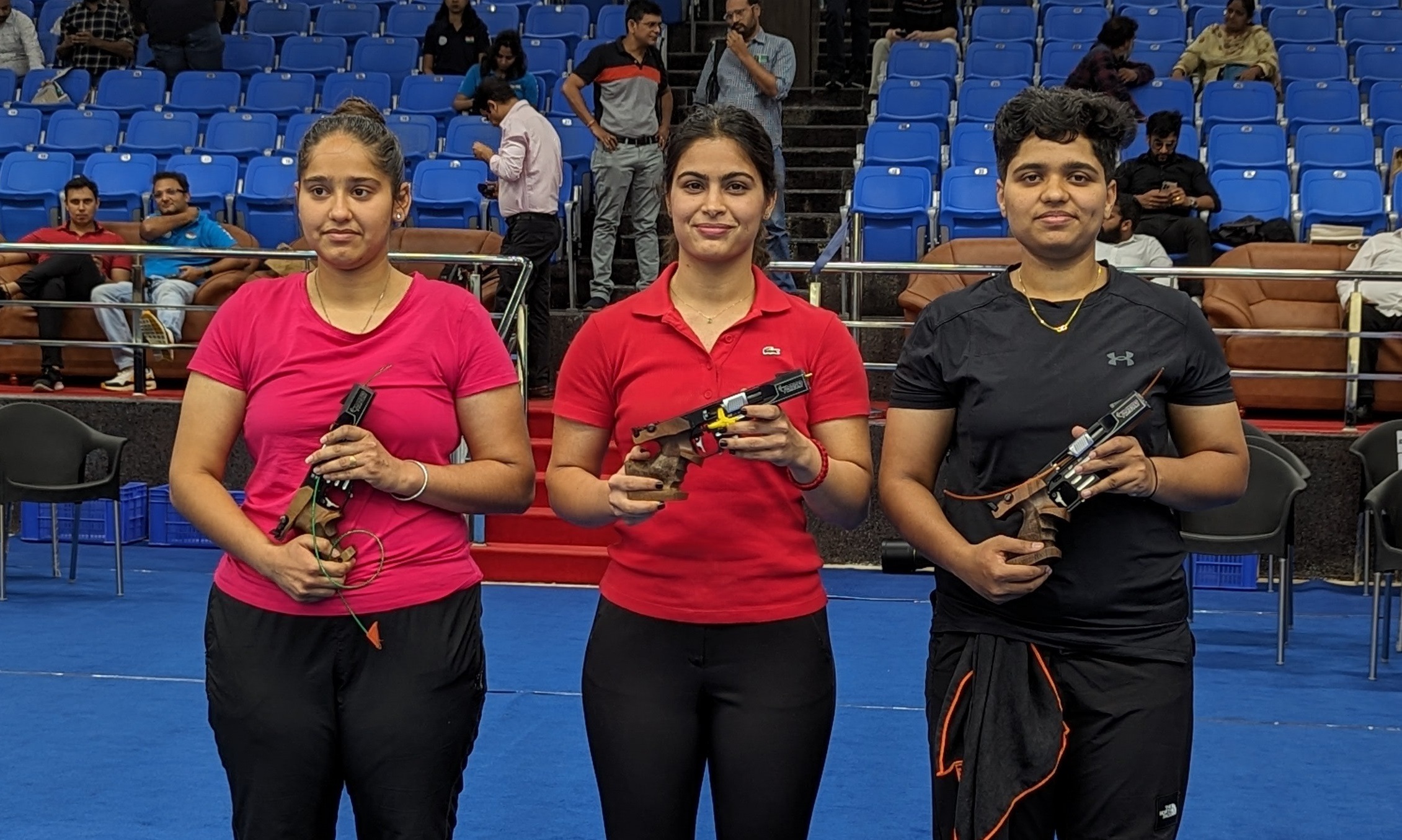 मनु ने महिलाओं की 25 मीटर पिस्टल ट्रायल में अपना दबदबा कायम किया। उन्होंने दो में जीत हासिल की और अन्य दो में दूसरे स्थान पर रहीं। चयनित पांच में से वह एकमात्र निशानेबाज थीं, जो क्वालिफिकेशन राउंड में एक बार भी 580 से नीचे नहीं गईं।