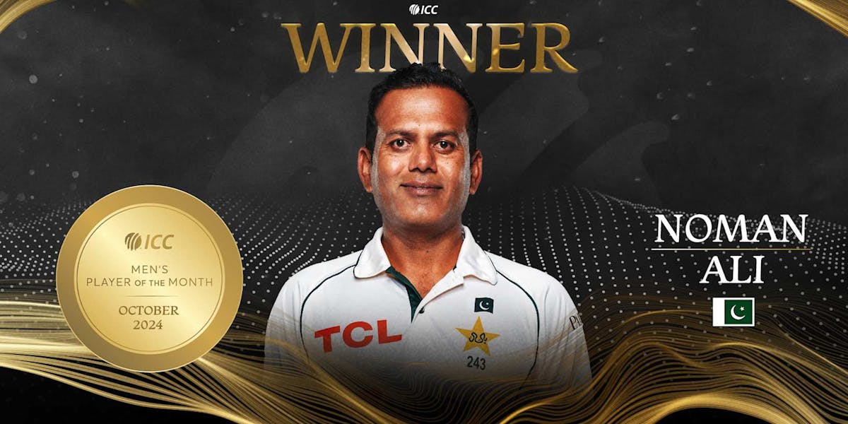 पाकिस्तान के स्पिन गेंदबाज नोमान अली ने अक्टूबर 2024 के लिए आईसीसी पुरुष खिलाड़ी का अवार्ड जीतने के लिए प्रतिस्पर्धी खिलाड़ियों को हराया है।
