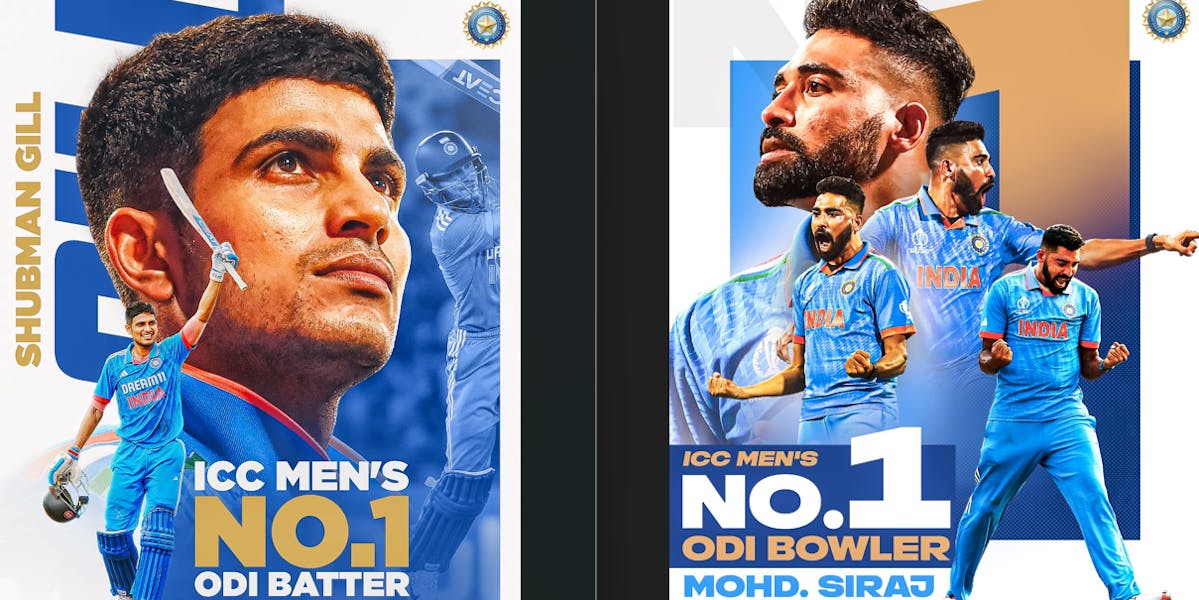 शुभमन गिल और मोहम्मद सिराज ICC वनडे रैंकिंग में टॉप पर